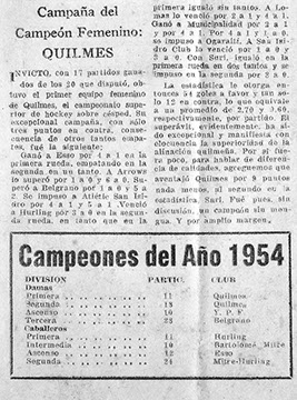 En 1952, el equipo de damas gana su primer campeonato en la primera división, así como también salen campeonas del torneo eliminatorio, tanto el de la A.A.H. como el de Rosario. Al año siguiente, pierden el campeonato por un punto, saliendo campeón el San Isidro Club. Para 1954, no sólo la división de primera sino también las de segunda y tercera, obtienen el título de campeonas. A partir de este año y hasta 1958, el Q.A.C. sale campeón indiscutido de la primera división.