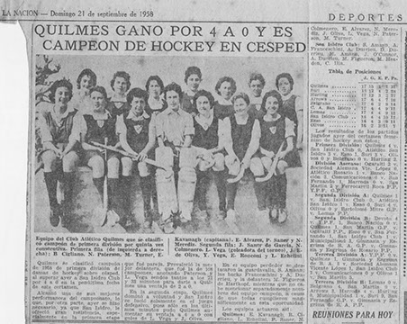 En 1959, Argentina interviene por primera vez en un torneo internacional organizado por la I.F.W.H.A. El equipo de la selección nacional, es integrado por diez jugadoras del Q.A.C. Ese año, el equipo de Quilmes supera la ausencia de sus diez jugadoras y obtiene el subcampeonato.
