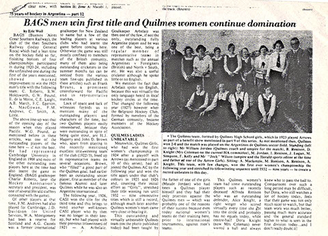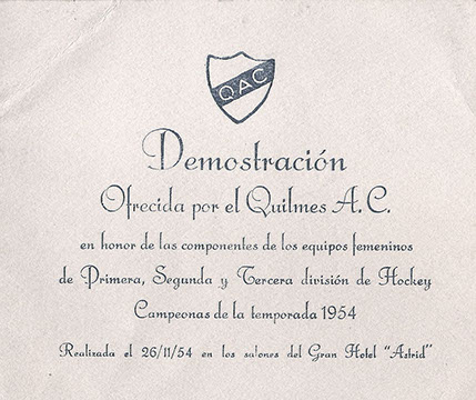 El lunes 4 de Septiembre del 2006 se realizó un homenaje a todos los seleccionados femeninos en el Club Ciudad de Bs. As., como todos saben el primer seleccionado nacional femenino de 1959 contaba con 10 integrantes del QAC, ellas eran Laura Vega, Joy Saner, Beatriz Cigliano, Noemi Merediz, Julia Echelini, Edna Kavanagh, Lucila Echelini, Margarita Turner, Noreen Paterson y Noemí Colmenero. Asistieron al evento que encabezaba Dawn Taylor (hija de una jugadora integrante del primer equipo femenino de QAC campeón desde 1925 hasta 1932)