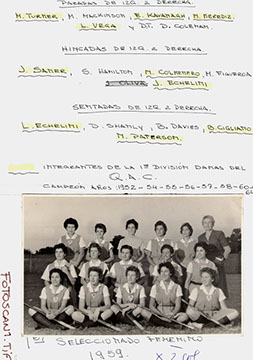 las siguientes ex leonas del QAC: Laura Vega (1959, 63 y 67), Joy Saner (1959, 63 y 67), Beatriz Cigliano (1959 y 63) y Julia Echelini (1959). No pudieron asistir por hallarse fuera del país, Noemí Merediz (1959) y Edna Kavanagh (1959). Lamentablemente de ese seleccionado han fallecido las siguientes jugadoras del QAC, Margarita Turner (1959), Lucila Echelini (1959 y 1963), Noemí Colmenero (1959) y Noreen Paterson (1959 y 63). También integraron otros seleccionados, Graciela Cassiau (1967), Lilian Gallager (fallecida) (1967) y Adriana Rupar.